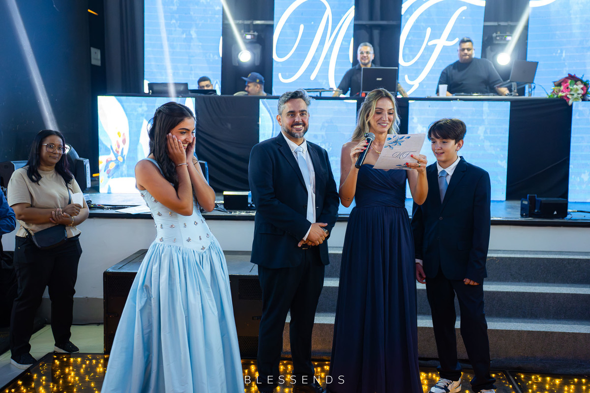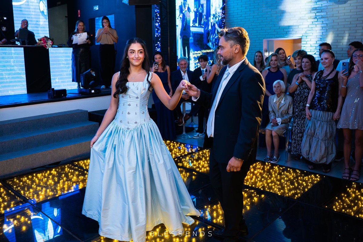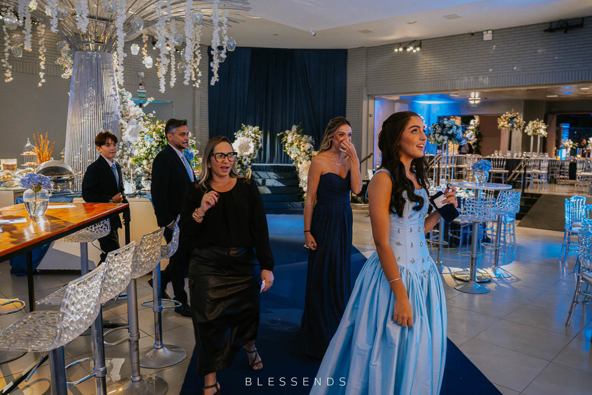 A festa da debutante de 15 anos Maria Fernanda foi realizada no renomado Angelinos Buffet, um espaço sofisticado que proporcionou o cenário ideal para fotos incríveis e uma fotografia aniversário de alto nível. Cada ambiente foi cuidadosamente aproveitado para valorizar ainda mais a beleza e a alegria desse momento único.