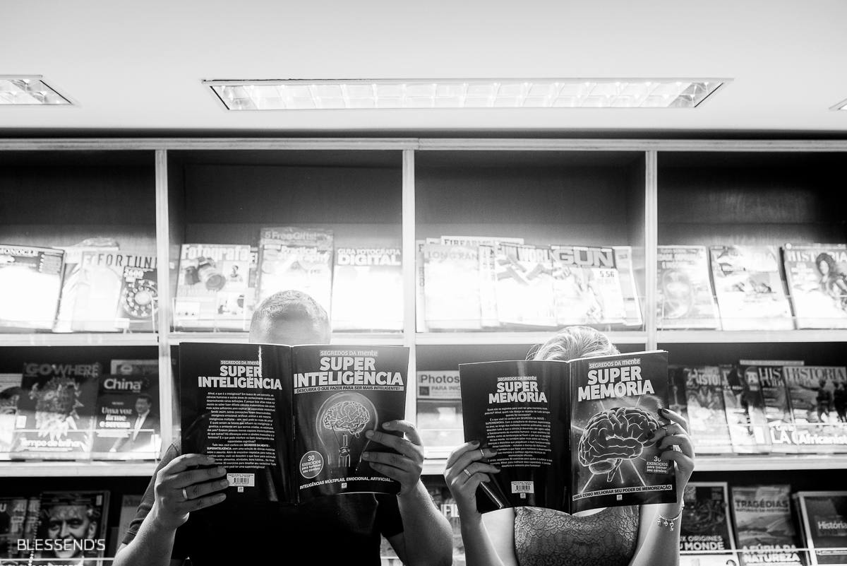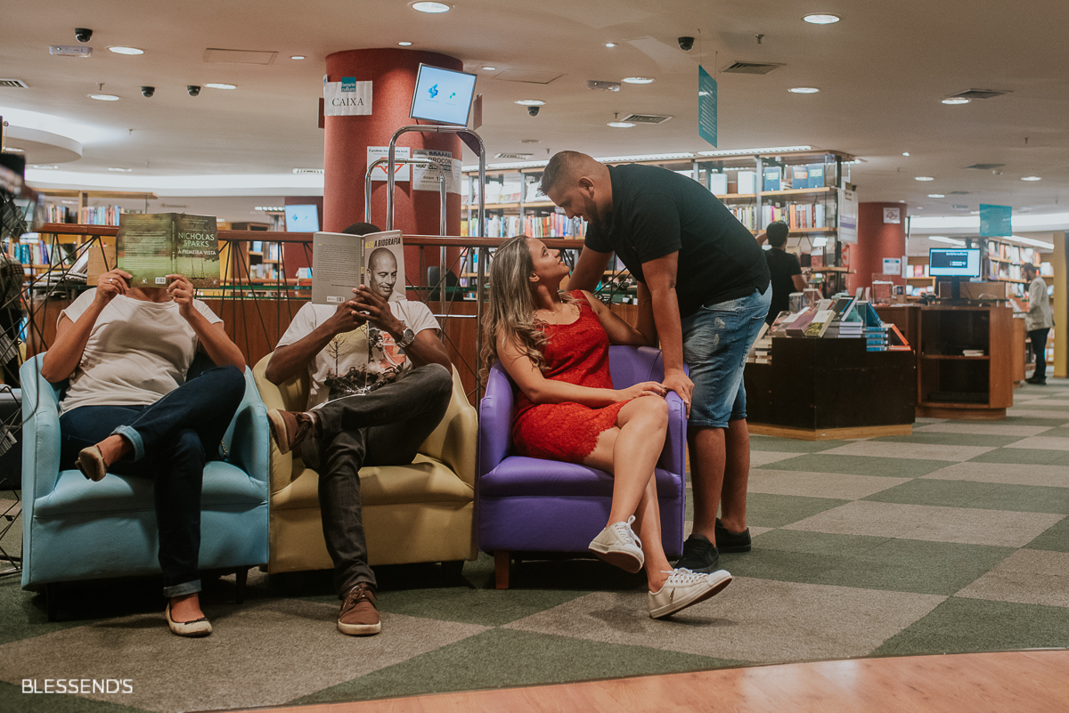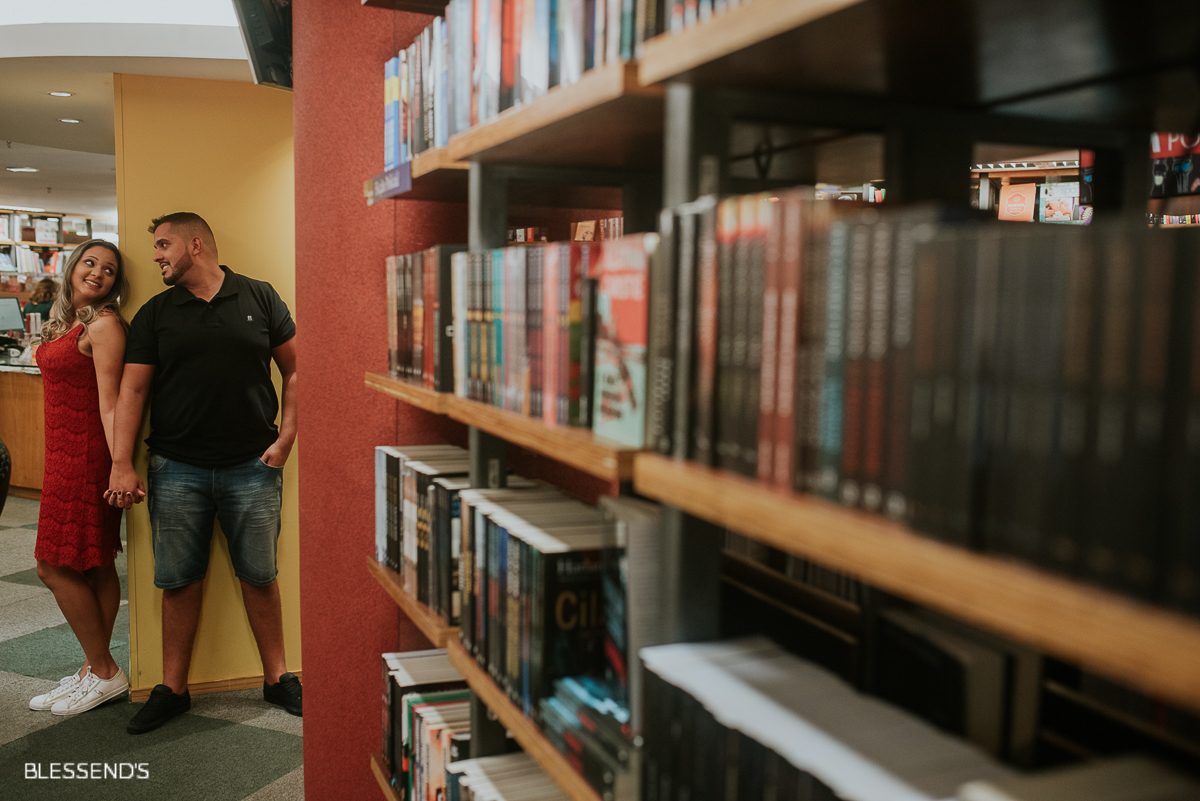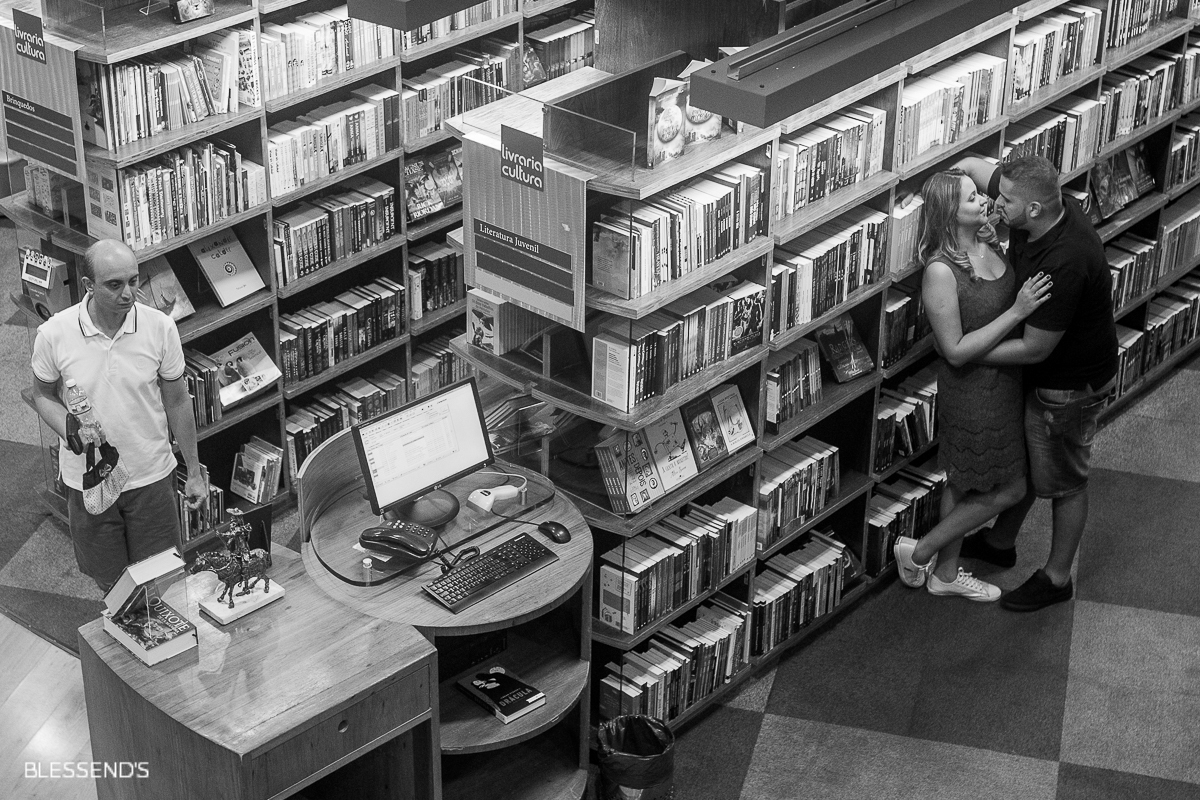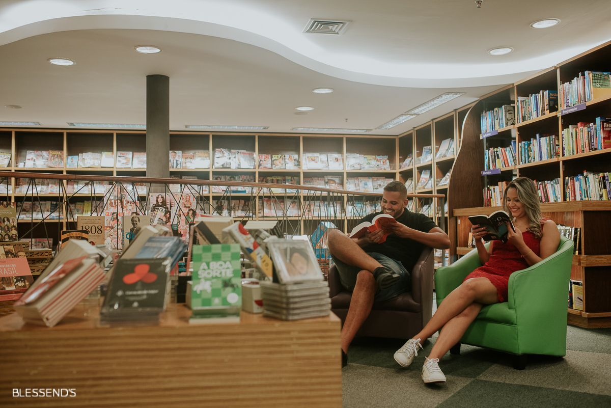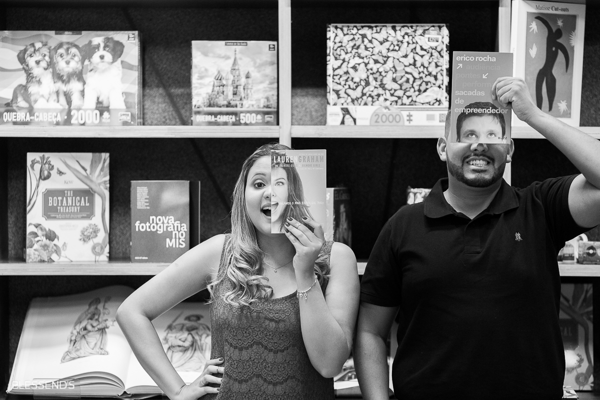 Casal que ama ler, quis fazer o Ensaio de fotos Pré Wedding na livraria cultura do shopping Iguatemi Campinas - SP
