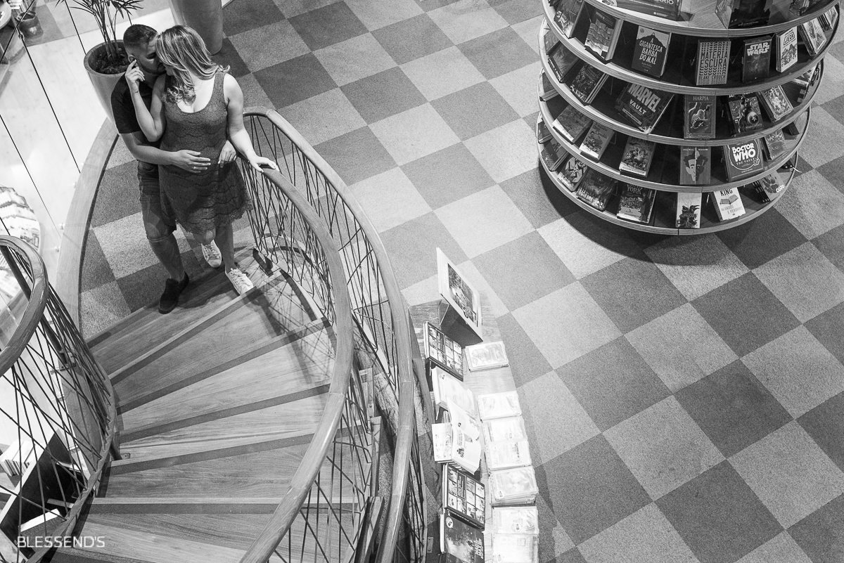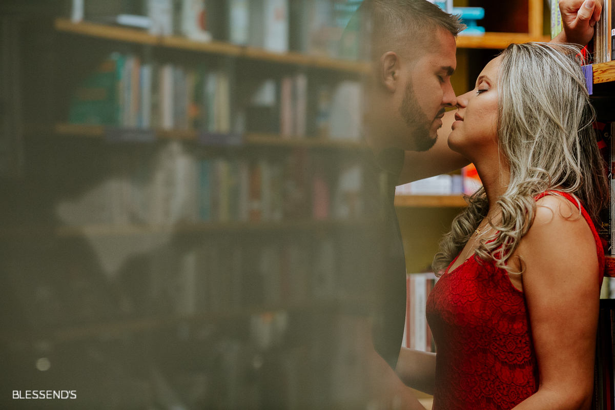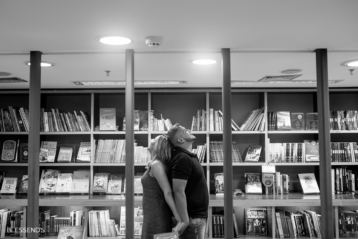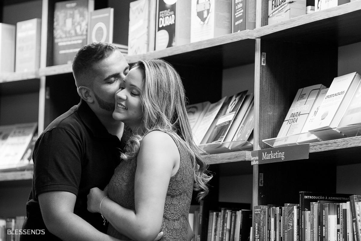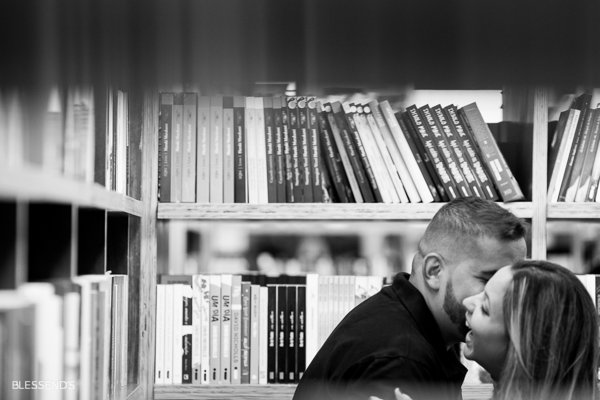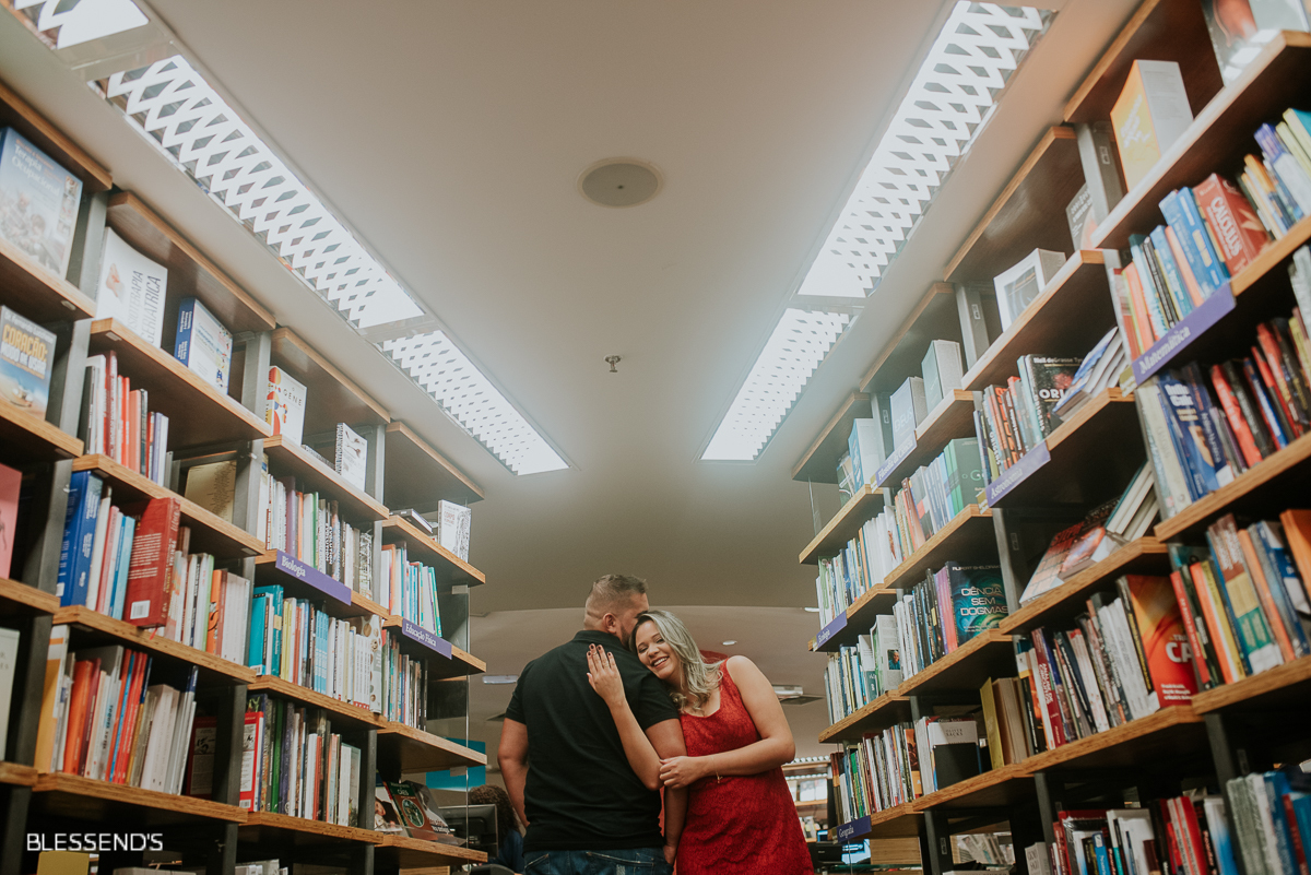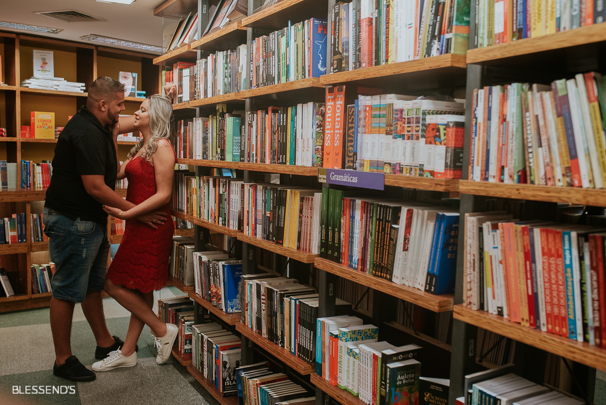 Casal que ama ler, quis fazer o Ensaio de fotos Pré Wedding na livraria cultura do shopping Iguatemi Campinas - SP